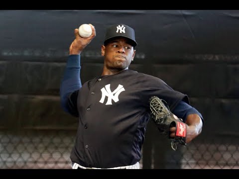 Luis Severino (born February 20, 1994) is a Dominican professional baseball pitcher for the New York Yankees of Major League Baseball (MLB). He made his Major League debut in 2015. He was named an All-Star in 2017.Severino signed with the New York Yankees as an international free agent on December 26, 2011, agreeing on a $225,000 signing bonus. At the time, he could throw his fastball at 91 miles per hour (146 km/h). He made his professional debut for the Dominican Summer League (DSL) Yankees 1 that year. He started 14 games, pitching to a 4–2 win-loss record with a 1.68 earned run average (ERA) and 45 strikeouts in 64 1⁄3 innings. He started 2013 with the DSL Yankees 1 and was promoted to the Charleston RiverDogs of the Class A South Atlantic League during the season. He finished 4–2 with a 2.45 ERA, 53 strikeouts over 44 innings in 10 games (eight starts). His fastball velocity reached 97 miles per hour (156 km/h) at Charleston. Wikipedia